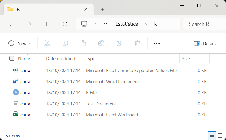 Na Figura 7.6 ilustra-se a situação com 5 ficheiros chamados carta. Note-se que os ícones e as descrições são diferentes, mas a utilização do mesmo nome pode gerar confusão.