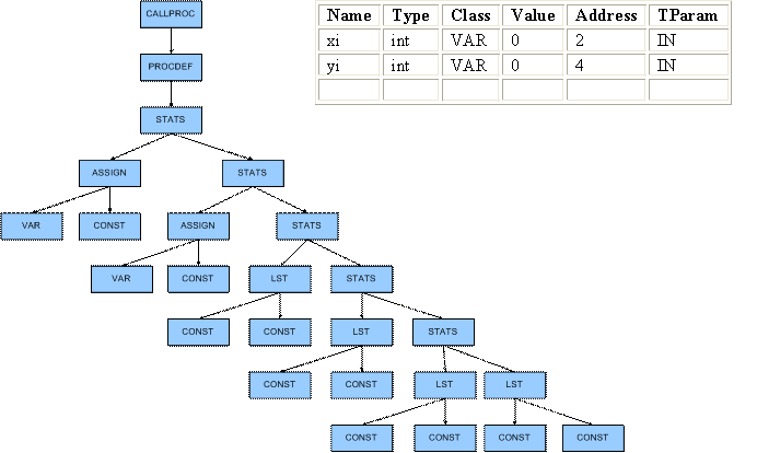 Structure of DAST nodes – name of the symbol, production identifier, set